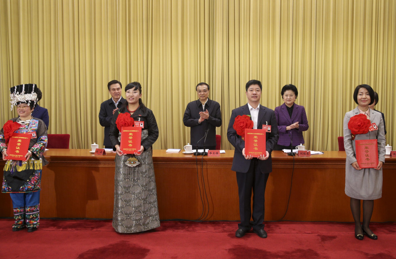 会前,李克强等领导同志亲切会见了与会代表,并向全国实施妇女儿童发展纲要先进集体和先进个人代表颁奖。