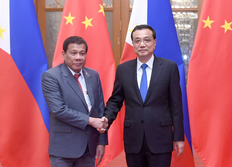 李克强表示,中菲是友好邻邦。习近平主席同总统先生多次成功会晤。中菲关系沿着睦邻友好的轨道前行符合两国和两国人民的共同利益,也是地区和平稳定的要求。中方愿同菲方加强发展战略对接,在双边贸易扩大规模、优化结构的同时,推进产能、基础设施建设、金融、农渔业等互利合作,加强人文交流与减贫合作,让中菲关系的发展不仅更好造福双方人民,而且促进地区的和平稳定与发展繁荣。