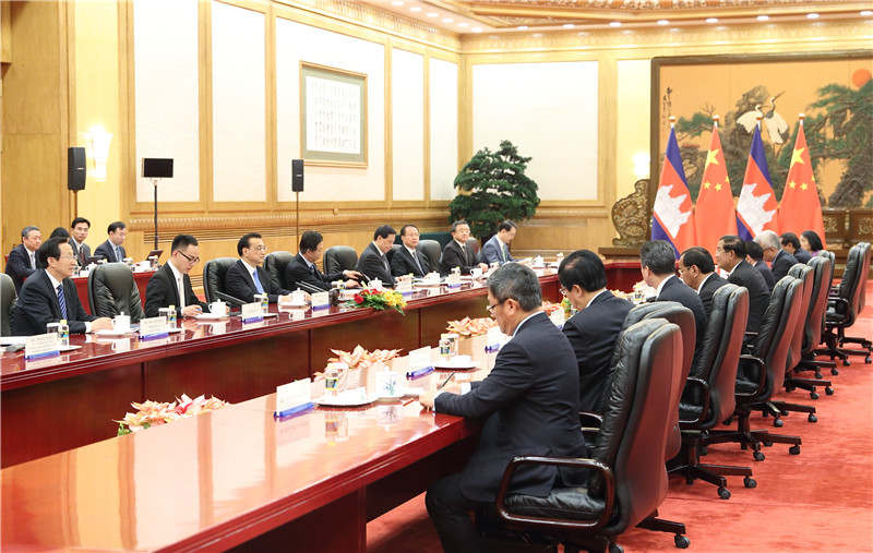 李克强表示,中柬友谊是两国老一代领导人共同缔造并精心培育的,历久弥坚。习近平主席去年对柬进行国事访问,在新的国际政治经济形势下发扬光大了中柬友好。中方愿同柬方保持高层交往和战略沟通,深化务实合作,密切人文交流,就国际和地区事务加强协调,更好造福两国和本地区各国人民。