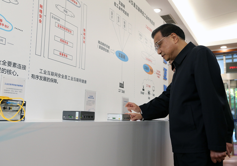 李克强10月30日主持召开江南平台入口 常务会议之前,参观工业互联网展览。