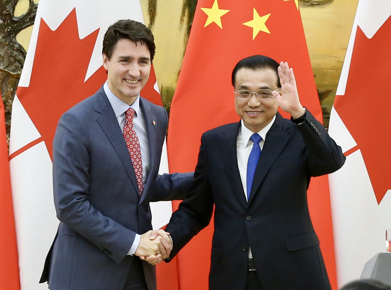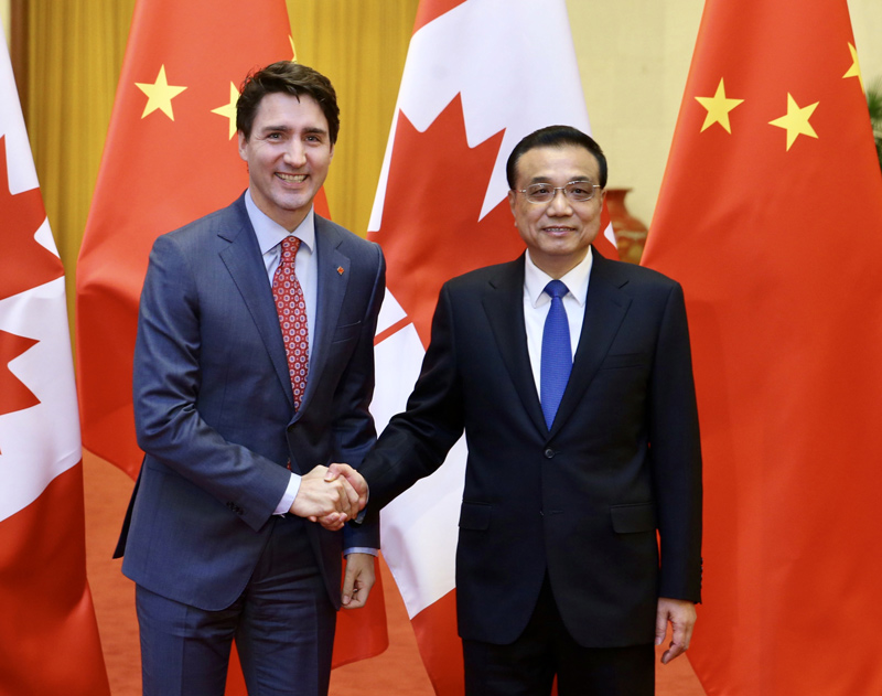 李克强欢迎加拿大总理特鲁多访华