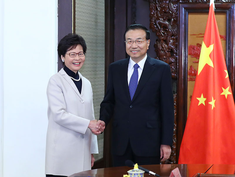 李克强表示,在林郑月娥行政长官的带领下,新一届特区政府齐心协力,履行承诺,积极施政,努力对接国家发展战略,着力解决市民普遍关心的民生问题,促进香港经济保持增长势头。中央政府对林郑月娥行政长官和新一届特区政府的工作给予充分肯定。