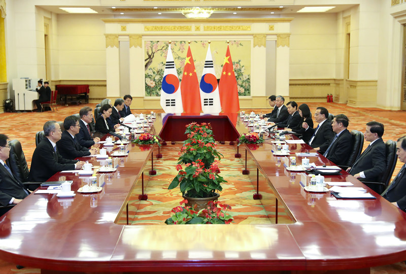 李克强指出,中韩合作领域广泛,人文交流密切,形成互利共赢的局面。下阶段,双方应抓住机遇,巩固两国关系转圜改善势头。要加强各自发展战略对接,适时启动中韩自贸协定第二阶段谈判,继续办好“中韩创新创业园”,扩大金融合作,拓展人工智能、5G、大数据等新兴领域合作,为彼此企业赴对方国家投资兴业营造良好的营商环境。拉紧人文交流纽带,为中韩关系行稳致远夯实民意基础。