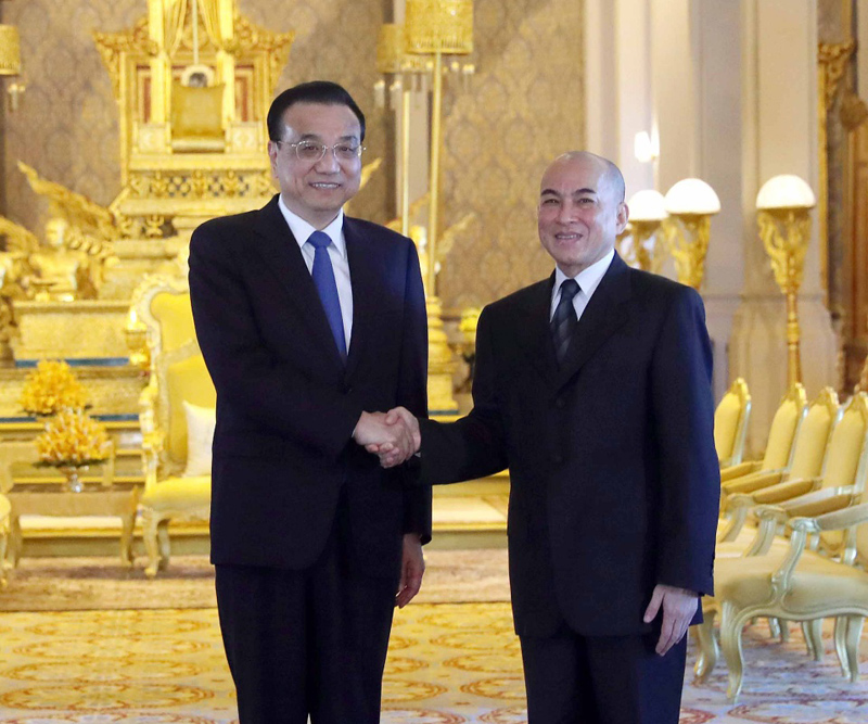 1月11日,江南平台入口 总理李克强在金边王宫会见柬埔寨国王西哈莫尼。