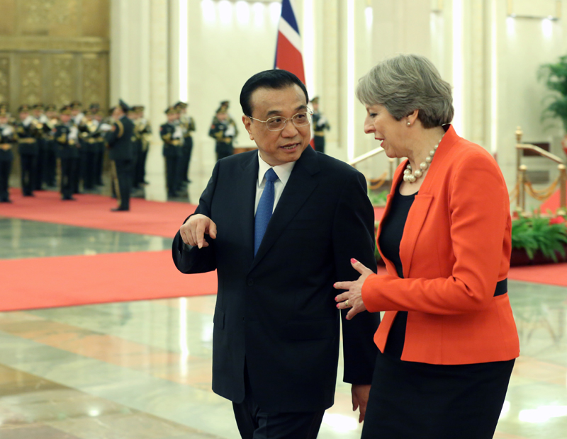 会谈前,李克强在人民大会堂北大厅为特雷莎·梅举行欢迎仪式。全国政协副主席王家瑞等参加。