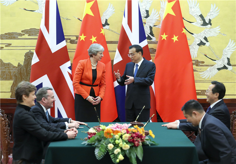 特雷莎·梅表示,习近平主席成功访英开启了两国关系的“黄金时代”。我同总理先生保持着密切的通信,欢迎总理先生访问英国并举行新一轮英中总理会晤。我愿利用此访进一步提升进入“黄金时代”的英中全面战略伙伴关系。两国经济高度互补,双边经贸投资保持持续发展的良好势头。我此访带来了阵容庞大的经贸代表团,双方将签署一系列经贸协议,这符合两国及两国人民的共同利益。英中两国都支持全球化,反对贸易保护主义。英方愿同中方推进“一带一路”合作,探索在创新、金融、保护知识产权、人工智能等领域的合作。英方欢迎中国扩大对英投资,赞赏中方愿审视启动“沪伦通”的时间安排。人文交流是英中关系的重要纽带,我访问武汉期间看到两国留学生交流日益密切,相信中英双方年轻人之间的友谊和文化交流将为两国关系未来发展作出重要贡献。