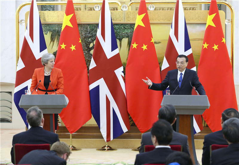当日下午,两国总理共同会见记者并回答提问。双方积极评价会晤成果。李克强表示,当前英国面临脱欧的新形势,但中英关系不会因为英欧关系的变化而变化。我们将继续本着相互尊重、平等相待、互利共赢的原则,推动中英关系再上新台阶,使中英、中欧关系发展相互促进。