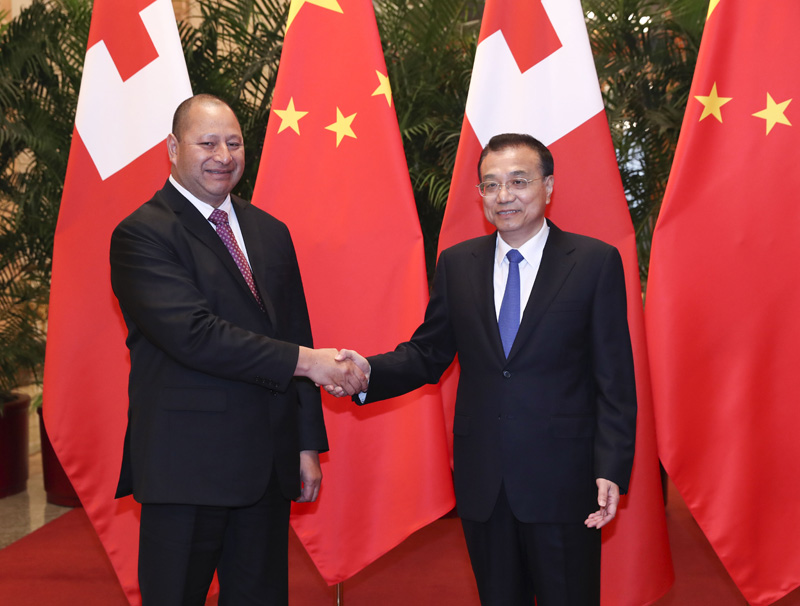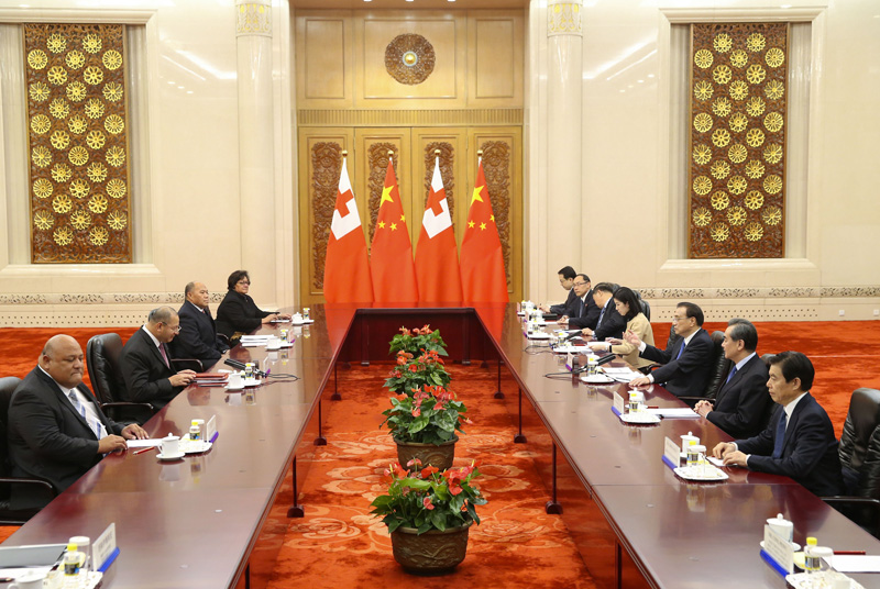李克强表示,汤加是中国在太平洋岛国地区的好朋友、好伙伴。习近平主席同国王陛下举行富有成果的会谈,有力推动两国关系发展。我们赞赏汤方坚定奉行一个中国政策,愿以两国建交20周年为契机,巩固政治互信,将“一带一路”倡议同汤加发展战略更好对接,扩大各领域务实合作,密切人文交流,推动两国关系不断迈上新台阶。中方支持汤加重大生产项目、基础设施和民生工程建设,愿同汤加开展农业技术交流,也欢迎汤加优质农渔业产品进入中国市场。
