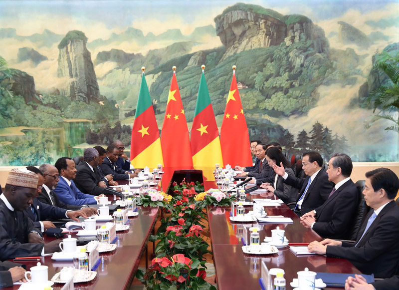 李克强指出,中国同包括喀麦隆在内的非洲国家都是发展中国家,拥有共同发展利益。中方向喀方提供力所能及的帮助不附加任何政治条件。中方支持中国企业赴喀投资兴业,愿同喀方在基础设施、工业园区建设方面创新合作模式,助力喀经济可持续发展。当前形势下,各方应共同维护贸易投资自由化和便利化,遵守市场原则和商业规则,反对保护主义。