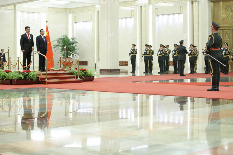 李克强举行仪式欢迎蒙古国总理呼日勒苏赫访华