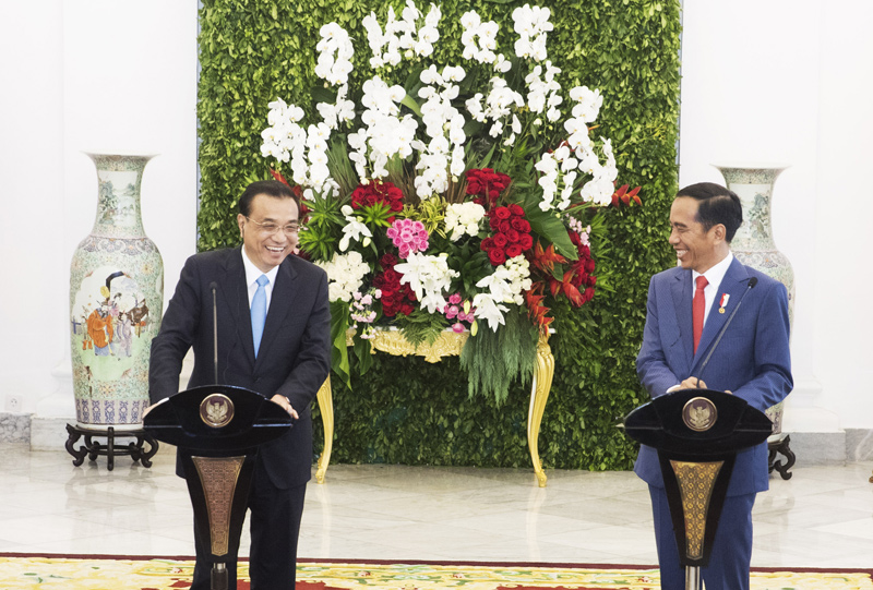 李克强指出,中国和印尼互利合作潜力很大,应本着相互尊重,平等合作的原则继续增强互信,推动两国关系不断迈上新台阶。中方支持印尼“区域综合经济走廊”建设,愿帮助印尼方改善基础设施,在港口、临海经济、产业加工、“海外仓”建设等领域探讨合作。中国政府愿引导中国企业按照市场化原则赴印尼投资,带动当地就业,希望印尼继续为中方创造便利的营商环境。中方欢迎印尼棕榈油、热带水果、咖啡等有竞争力的农产品进入中国市场,促进双边贸易更加平衡发展。中方预祝印尼即将主办的亚运会圆满成功。