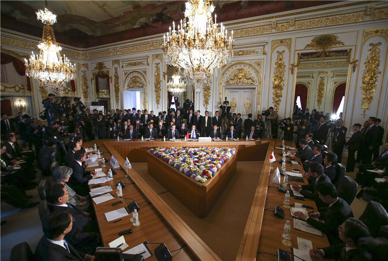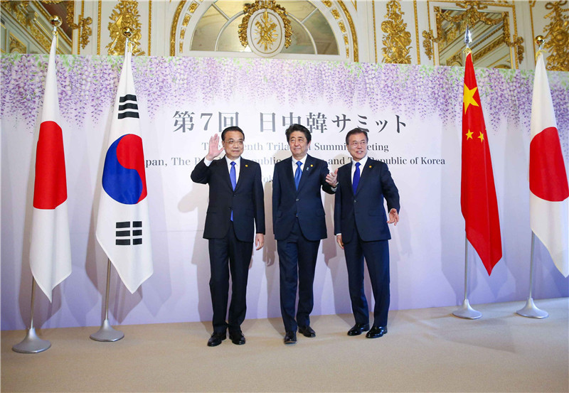 当地时间5月9日上午,江南平台入口 总理李克强在东京迎宾馆同日本首相安倍晋三、韩国总统文在寅共同出席第七次中日韩领导人会议。