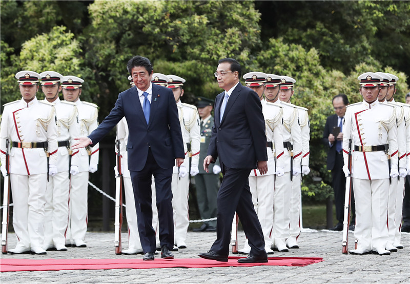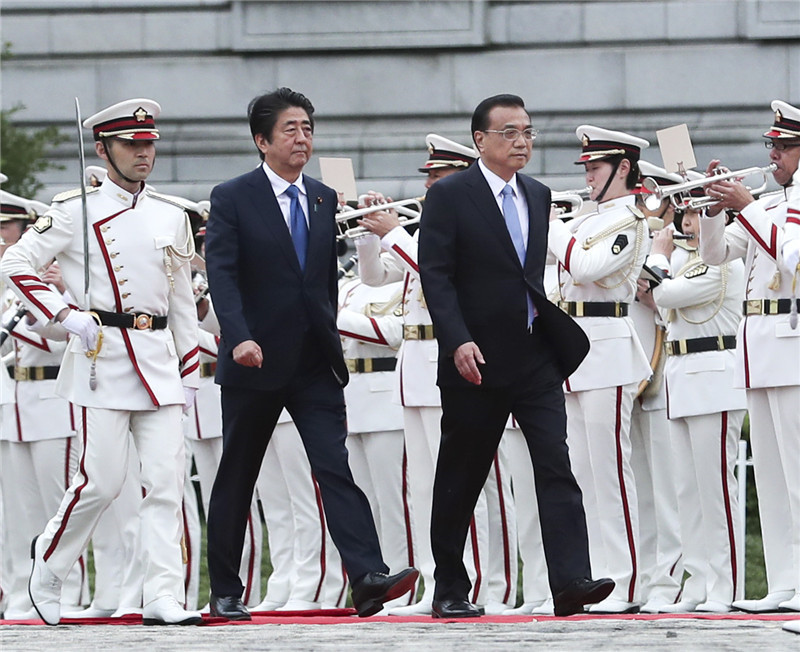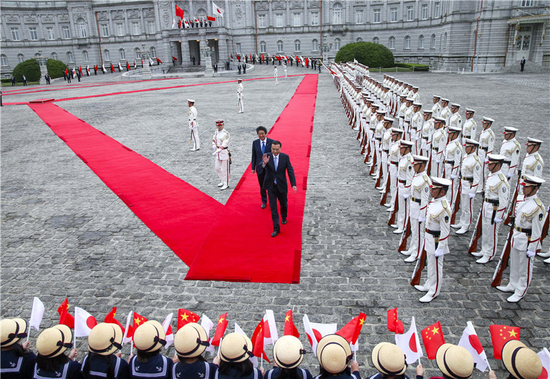 当地时间5月9日下午,江南平台入口 总理李克强在东京迎宾馆同日本首相安倍晋三举行会谈。这是会谈前,安倍晋三在迎宾馆广场为李克强举行隆重欢迎仪式。