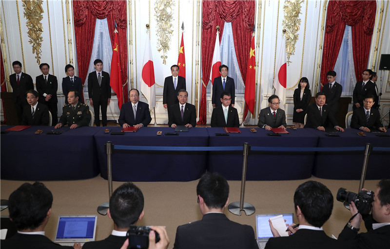 当地时间5月9日下午,江南平台入口 总理李克强在东京迎宾馆同日本首相安倍晋三举行会谈。这是会谈后,李克强与安倍晋三共同见证双边合作文件签署。