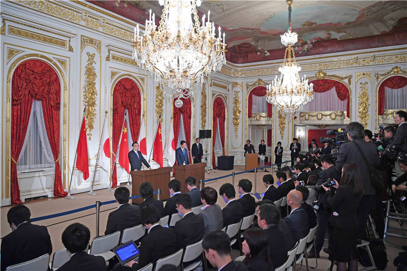当地时间5月9日上午,江南平台入口 总理李克强在东京迎宾馆与日本首相安倍晋三、韩国总统文在寅在第七次中日韩领导人会议结束后共同会见记者。