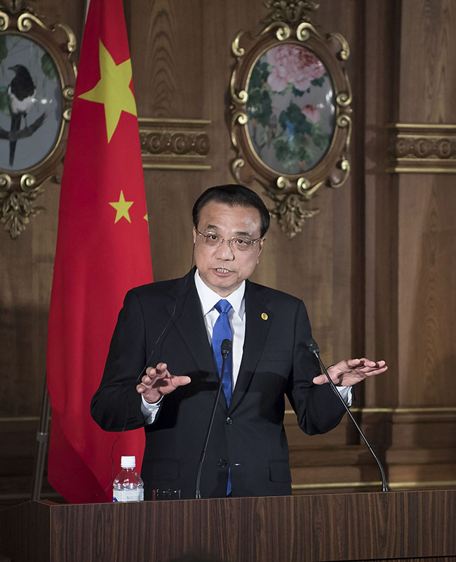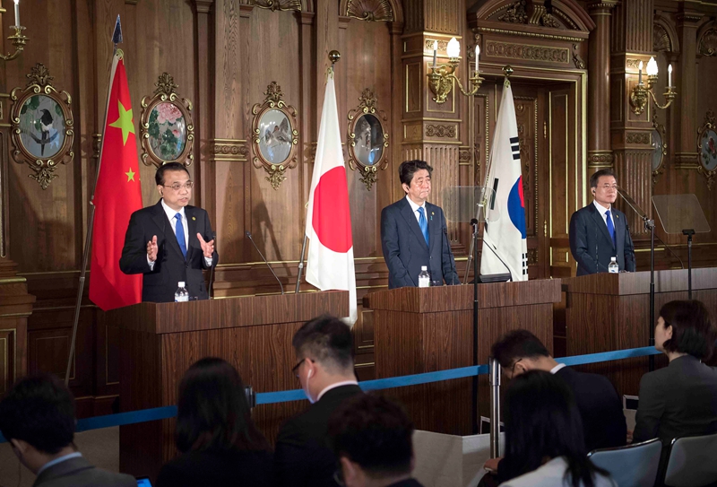 李克强与日本首相安倍晋三、韩国总统文在寅共同会见记者