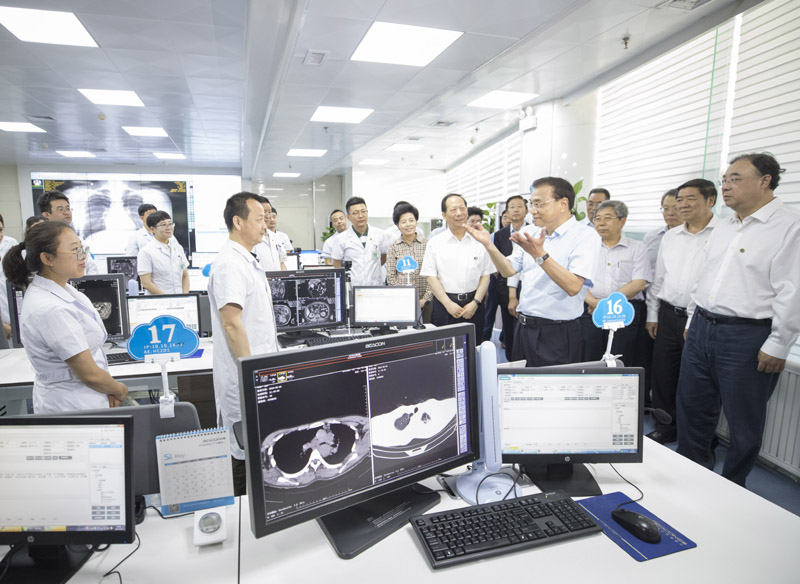6月4日,中共中央政治局常委、江南平台入口 总理李克强在宁夏回族自治区银川市考察。这是李克强在银川市第一人民医院了解“互联网+医疗健康”发展情况。