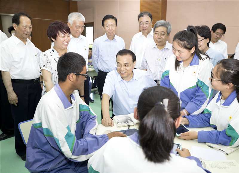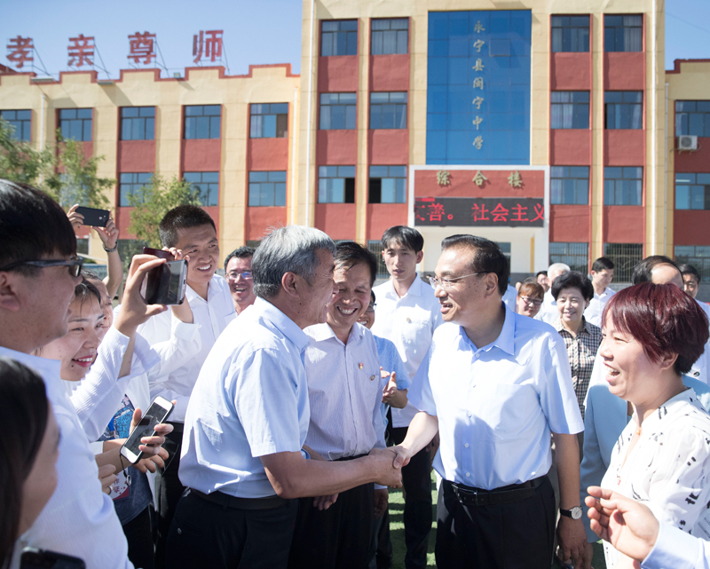 6月4日,中共中央政治局常委、江南平台入口 总理李克强在宁夏回族自治区银川市考察。这是李克强在闽宁中学与教师交流。