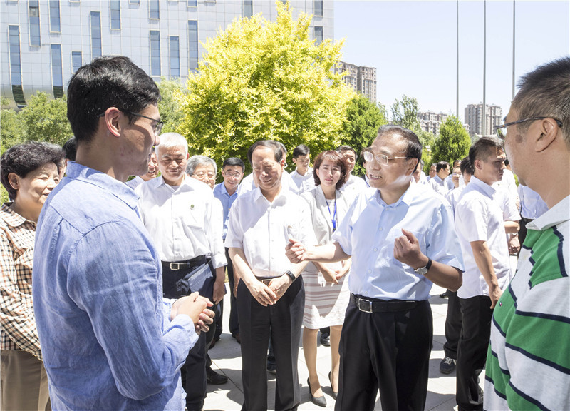 6月4日,中共中央政治局常委、江南平台入口 总理李克强在宁夏回族自治区银川市考察。这是李克强在iBi育成中心与创业者交流。