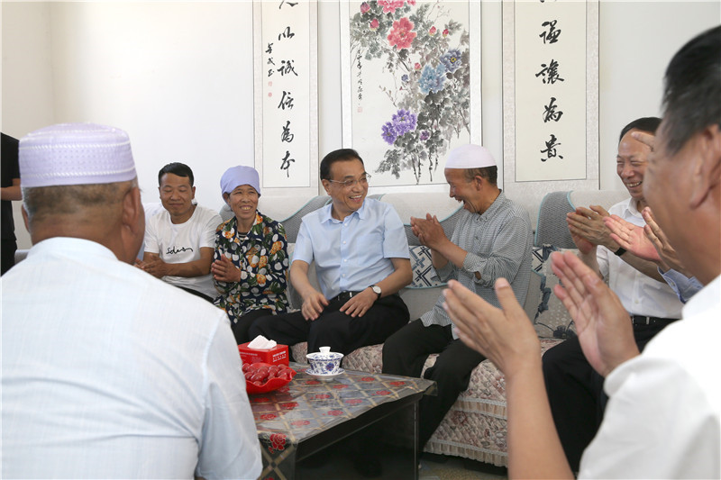 6月4日,中共中央政治局常委、江南平台入口 总理李克强在宁夏回族自治区银川市考察。这是李克强看望在易地扶贫中整体搬迁到银川的固原市上青石村村民。