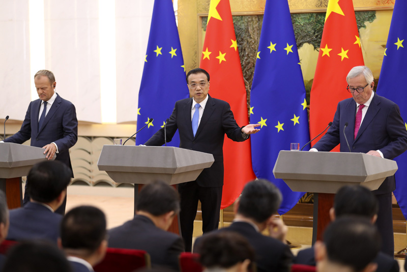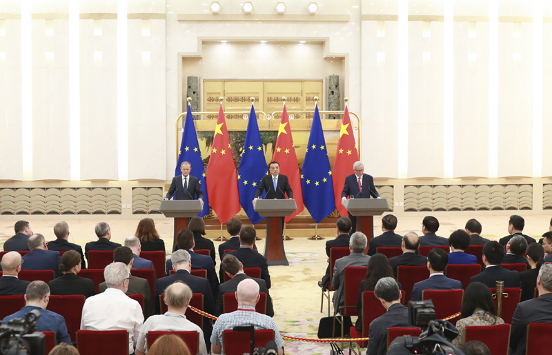 图斯克和容克表示,欧方乐见中国发展成长为世界重要力量。在当今世界,欧中关系变得更为重要,并且潜力巨大。欧方愿推动欧中全面战略伙伴关系进一步发展,同中方一道维护以规则为基础的国际秩序,呼吁各方加入世界贸易组织改革进程并作出积极贡献。欧中经贸关系使双方都获益。欧方积极评价双方就投资协定谈判进行清单出价交换,希望谈判在未来取得更大进展,给双方企业以更好的预期和更大的市场准入。