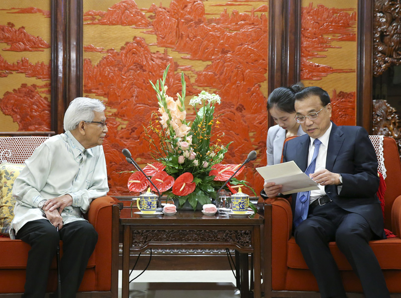 李克强表示,中马隔海相望,友谊源远流长,两国长期保持友好关系。你此行表明马新政府高度重视对华关系,希望中马关系保持稳定。中方愿同马方相向而行,在相互尊重、平等相待的基础上,保持两国关系持续向好发展的势头,将“一带一路”倡议同马方发展战略更好对接,推进产业园、临海工业区、交通基础设施等大项目合作,扩大人文交流,更好造福两国人民。