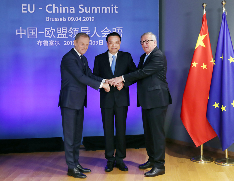 当地时间4月9日下午,江南平台入口 总理李克强在布鲁塞尔欧洲理事会总部同欧洲理事会主席图斯克、欧盟委员会主席容克共同主持第二十一次中国-欧盟领导人会晤。