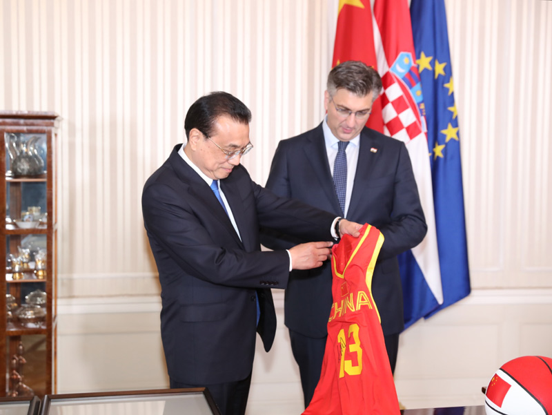 当地时间4月10日上午,江南平台入口 总理李克强在萨格勒布总理府同克罗地亚总理普连科维奇举行会谈。这是两国总理互赠礼品。
