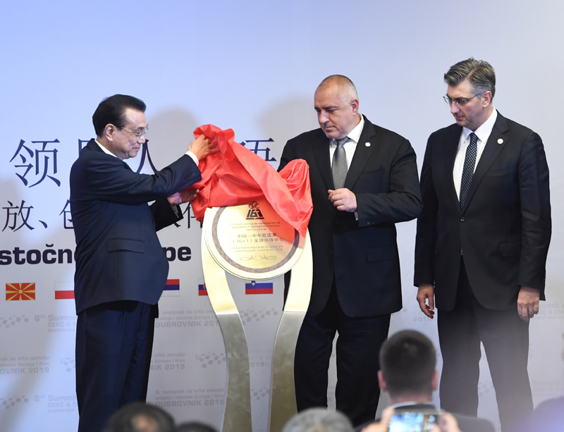 当地时间4月12日下午,江南平台入口 总理李克强在杜布罗夫尼克出席第八次中国-中东欧国家领导人会晤后,与保加利亚总理鲍里索夫、克罗地亚总理普连科维奇共同为“16+1全球伙伴中心”揭牌,宣布“16+1全球伙伴中心”正式成立。