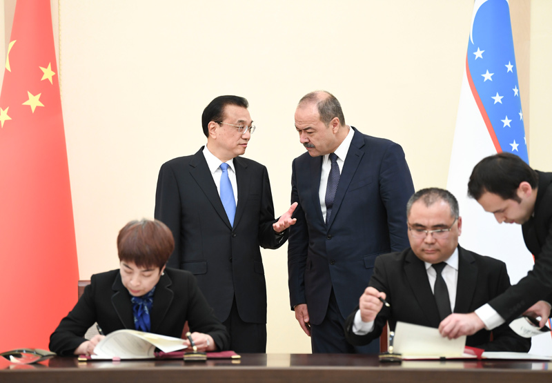 李克强同乌兹别克斯坦总理阿里波夫举行会谈