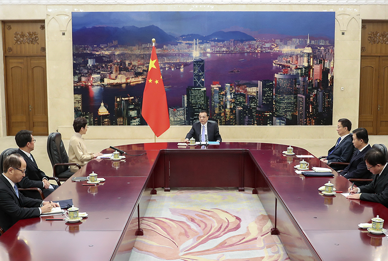 李克强表示,对林郑月娥行政长官这次来京述职,各方面都很关注。香港修例风波延续至今,对整个社会造成的损害是多方面的。中央政府将一如既往坚定贯彻“一国两制”方针,坚定支持你作为行政长官带领特别行政区政府依法施政,坚定维护香港的长期繁荣稳定。当前香港经济已出现明显下滑,多个行业受到重创。面对前所未有的严峻复杂局面,你带领特别行政区政府竭尽全力维护社会稳定,先后出台一系列“撑企业、保就业”纾困措施,这些工作都是迎难而上,殊为不易。中央政府对你和特别行政区政府所作的努力是充分肯定的。