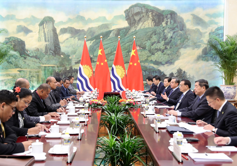 李克强表示,中国政府支持本国企业按照市场化、商业化原则同基方开展合作。基里巴斯渔业资源丰富,中国消费者对海产品需求快速增长,双方合作潜力巨大。中国愿同基方加强远洋渔业捕捞业合作,实现互利共赢。中方重视包括基方在内的太平洋岛国在气候变化问题上的特殊关切,愿本着共同但有区别责任的原则,在南南合作框架下加强应对气候变化合作。