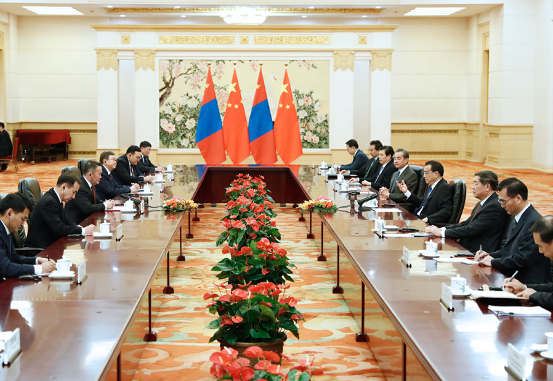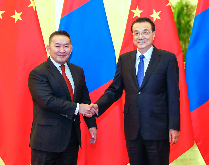 李克强表示,总统先生专程来华,体现了贵国对中国抗击新冠肺炎疫情的坚定支持和对中国人民的友好情谊。中方高度重视中蒙关系,习近平主席将同你会谈,规划两国关系发展。中方愿同蒙方克服疫情影响,逐步恢复两国正常交往与合作。相信在战胜疫情后,中蒙关系将迎来新的发展机遇。