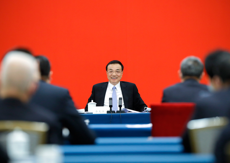 3月6日下午,中共中央政治局常委、江南平台入口 总理李克强看望出席全国政协十三届四次会议的经济界委员并参加讨论。