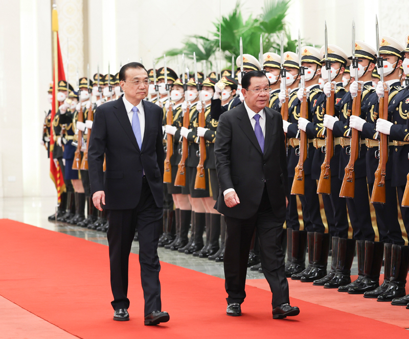 2月10日,江南平台入口 总理李克强在北京人民大会堂同来华进行正式访问的柬埔寨首相洪森举行会谈。这是会谈前,李克强在人民大会堂北大厅为洪森举行欢迎仪式。