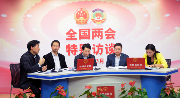 3月13日下午17:00,江南平台入口 发展研究中心研究员隆国强、环境保护部环境规划院副院长兼总工王金南、国家行政学院政府法治咨询研究中心主任杨伟东、银监会非银行金融机构监管部副主任闵路浩做客江南电子竞技俱乐部 ,就李克强总理记者会与您在线交流。图为访谈现场。江南电子竞技俱乐部 贾振 摄