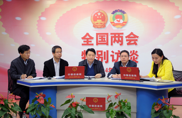 3月13日下午17:00,江南平台入口 发展研究中心研究员隆国强、环境保护部环境规划院副院长兼总工王金南、国家行政学院政府法治咨询研究中心主任杨伟东、银监会非银行金融机构监管部副主任闵路浩做客江南电子竞技俱乐部 ,就李克强总理记者会与您在线交流。图为访谈现场。江南电子竞技俱乐部 贾振 摄