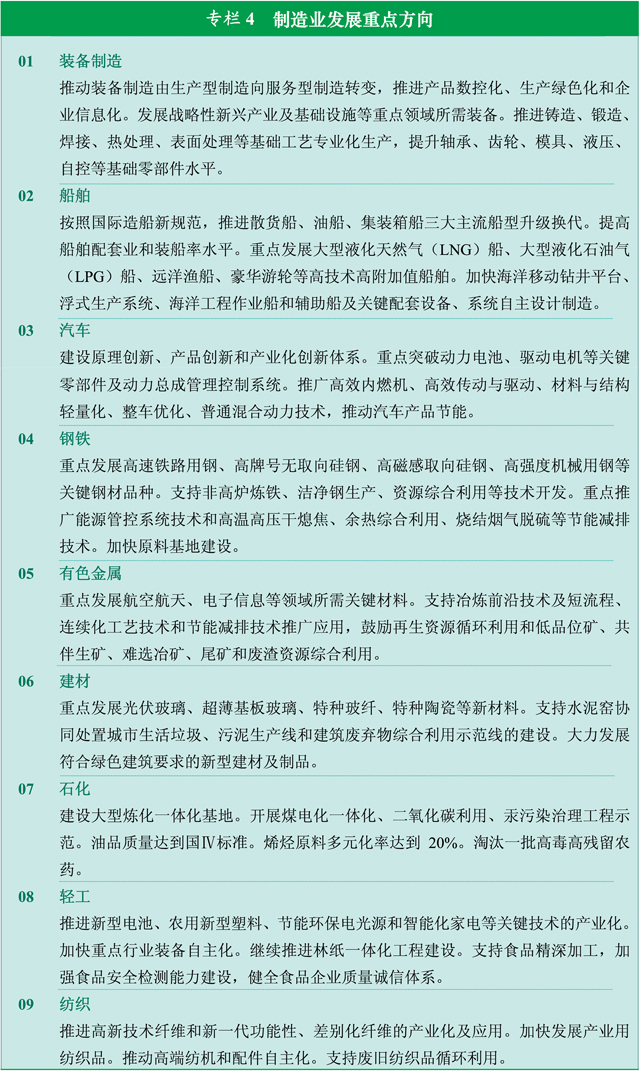 支持港澳增强产业创新能力,加快培育新的经济增长点,推动经济社会协调发展。支持香港环保、医疗服务、教育服务、检测和认证、创新科技、文化创意等优势产业发展,拓展合作领域和服务范围。支持澳门推动经济适度多元化,加快发展休闲旅游、会展商务、中医药、教育服务、文化创意等产业。