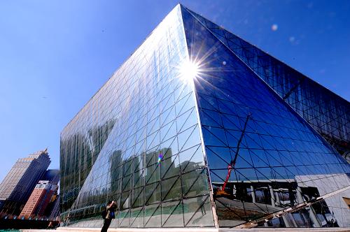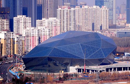 这是3月1日拍摄的沈阳文化艺术中心。近日,外形酷似“钻石”的沈阳文化艺术中心进入施工收尾阶段,预计6月30日将全部完成调试、验收并投入使用。 沈阳文化艺术中心总建筑面积约8.5万平方米,主体建筑由1800座的中央剧场、1200座的音乐厅和500座的多功能厅三部分组成,预计2014年投入使用。新华社发(张文魁 摄)