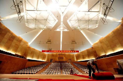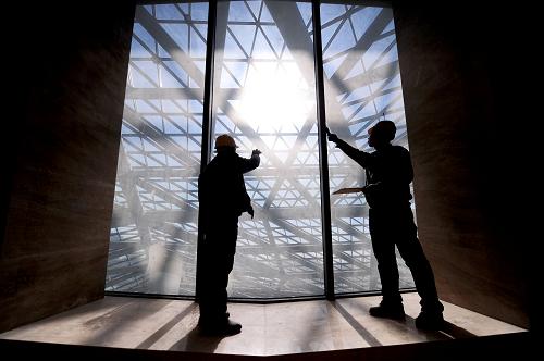 3月1日,工作人员在沈阳文化艺术中心内部施工。新华社发(张文魁 摄)