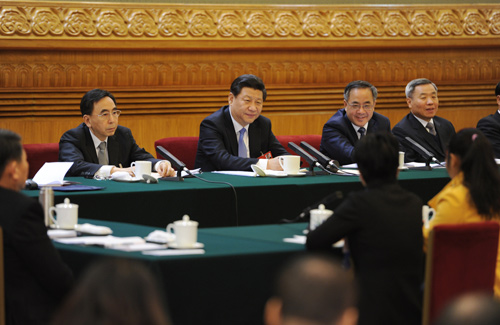 3月6日,中共中央总书记、国家主席、中央军委主席习近平参加十二届全国人大二次会议广东代表团的审议。 新华社记者鞠鹏摄