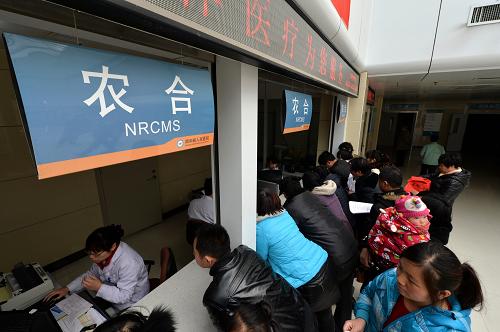 河北省南和县人民医院药房的工作人员在为群众取药(3月6日摄)。日前,记者从河北省卫计委获悉,2014年河北省将新农合人均筹资标准由340元提高至390元,在提高新农合筹资标准的同时,进一步提高新农合补偿水平,将补偿最高支付限额提高至10万元,政策范围内住院费用报销比例达到75%。新华社记者 朱旭东 摄