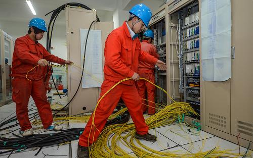 3月12日,在湖州110千伏大云变电所内,湖州供电公司电力工人正加紧对变电所进行扩建,确保工程如期投运。今年年初以来,浙江省湖州市电网推进主网扩建工程,加快湖州电网理顺工程建设,促进各级电网协调发展,增强湖州电网供电保障能力,以进一步满足地方经济发展的电力需求。新华社记者 徐昱 摄