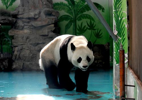 3月18日,郑州市动物园内的大熊猫“龙昇”在场馆内活动。今年2月9日,郑州动物园大熊猫“锦意”因感染死亡。国家林业局日前经过调查评估,认为郑州市动物园现有大熊猫寄养场馆多处不符合大熊猫饲养条件,场馆卫生条件不达标,存在疾病传播隐患,因此,责令郑州动物园停止大熊猫借展活动,限期整改,现有大熊猫“龙昇”由中国保护大熊猫研究中心收回饲养。郑州市动物园将按照要求把“龙昇”送回四川,同时加紧新熊猫馆的建设,并在建成后按照程序重新向国家林业局申报、验收。新华社记者 李安 摄