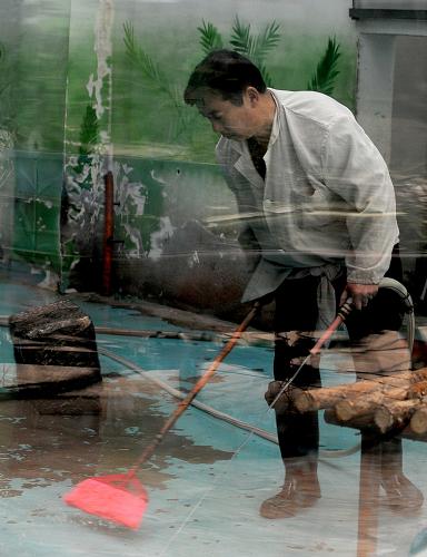 3月18日,工作人员在郑州市动物园大熊猫场馆内打扫卫生。新华社记者 李安 摄