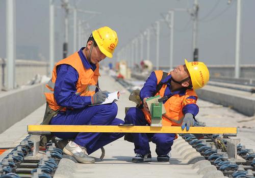 3月18日,施工人员在京福高铁安徽铜陵段施工。新华社发(过仕宁 摄) |
