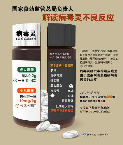 图表:国家食药监管总局负责人解读病毒灵不良反应 新华社发(大巢制图)