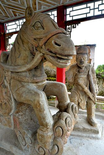 湖北省咸丰县唐崖土司城遗址内的石人石马(2013年12月14日摄)。新华社发(宋文 摄)
