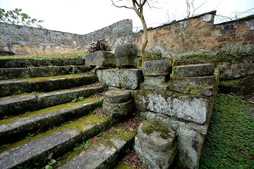 湖北省咸丰县唐崖土司城遗址内的墙壁和台阶(2013年12月14日摄)。新华社发(宋文 摄)