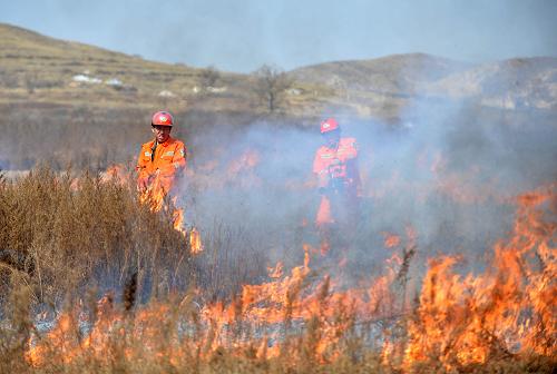 3月26日,呼和浩特市赛罕区的几名护林防火队员正在进行灭火演练。随着近年生态建设力度不断加大,呼和浩特市北郊大青山人工种植的树木逐步成林,春秋季节防火成为保护生态成果的一项重要任务。临近清明,呼和浩特市大青山沿线各区县林业防火部门加大巡查、宣传力度,严防林区发生火情。新华社记者 任军川 摄